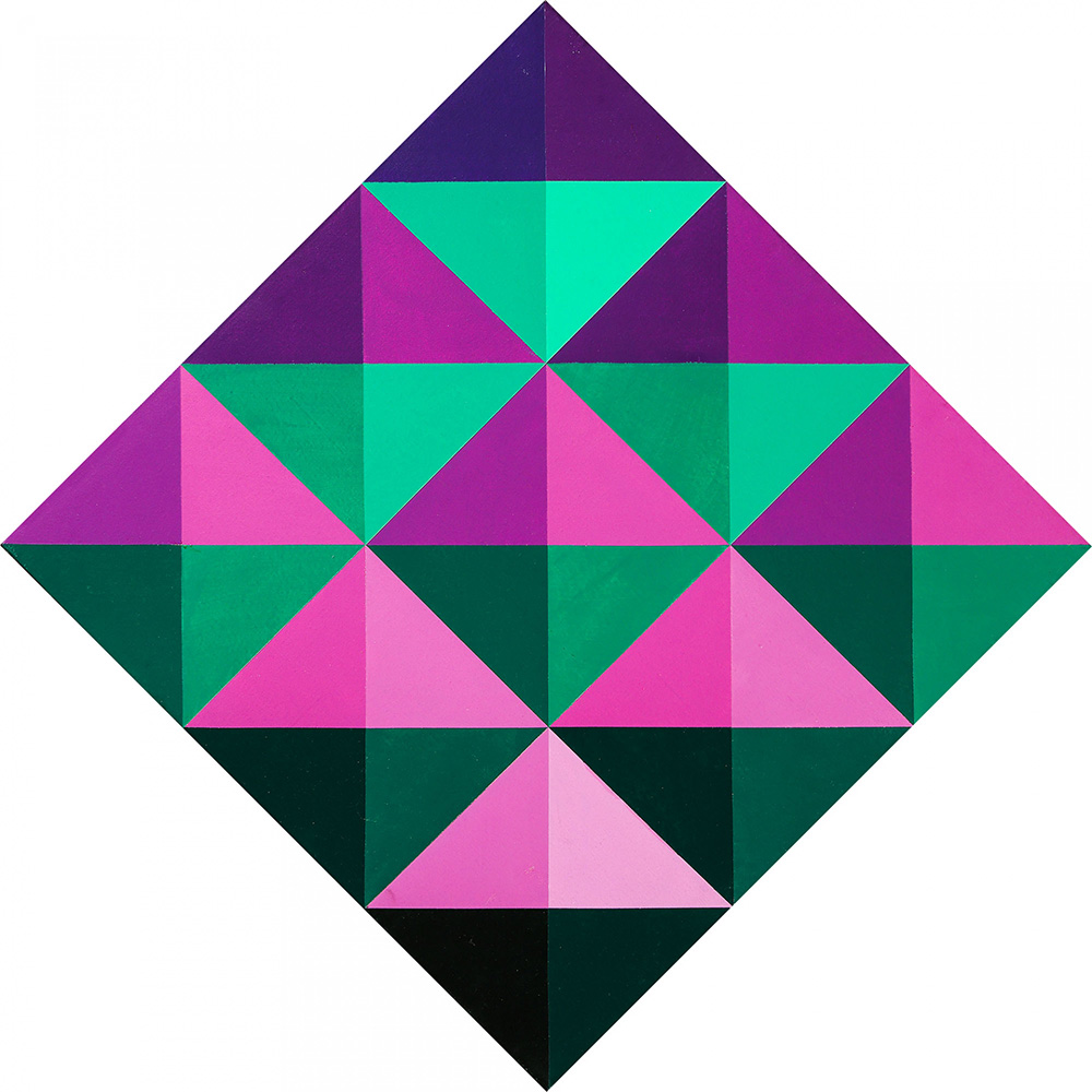 HANS JORG GLATTFELDER 1939 Senza titolo, 1972 Acrilico su tela, cm. 50 x 50 (diagonale cm. 70) Firmato sul retro L’artista ha confermato l’autenticità dell’opera Timbro Rossovermiglio Galleria d’Arte, sul retro Prov. Collezione Privata