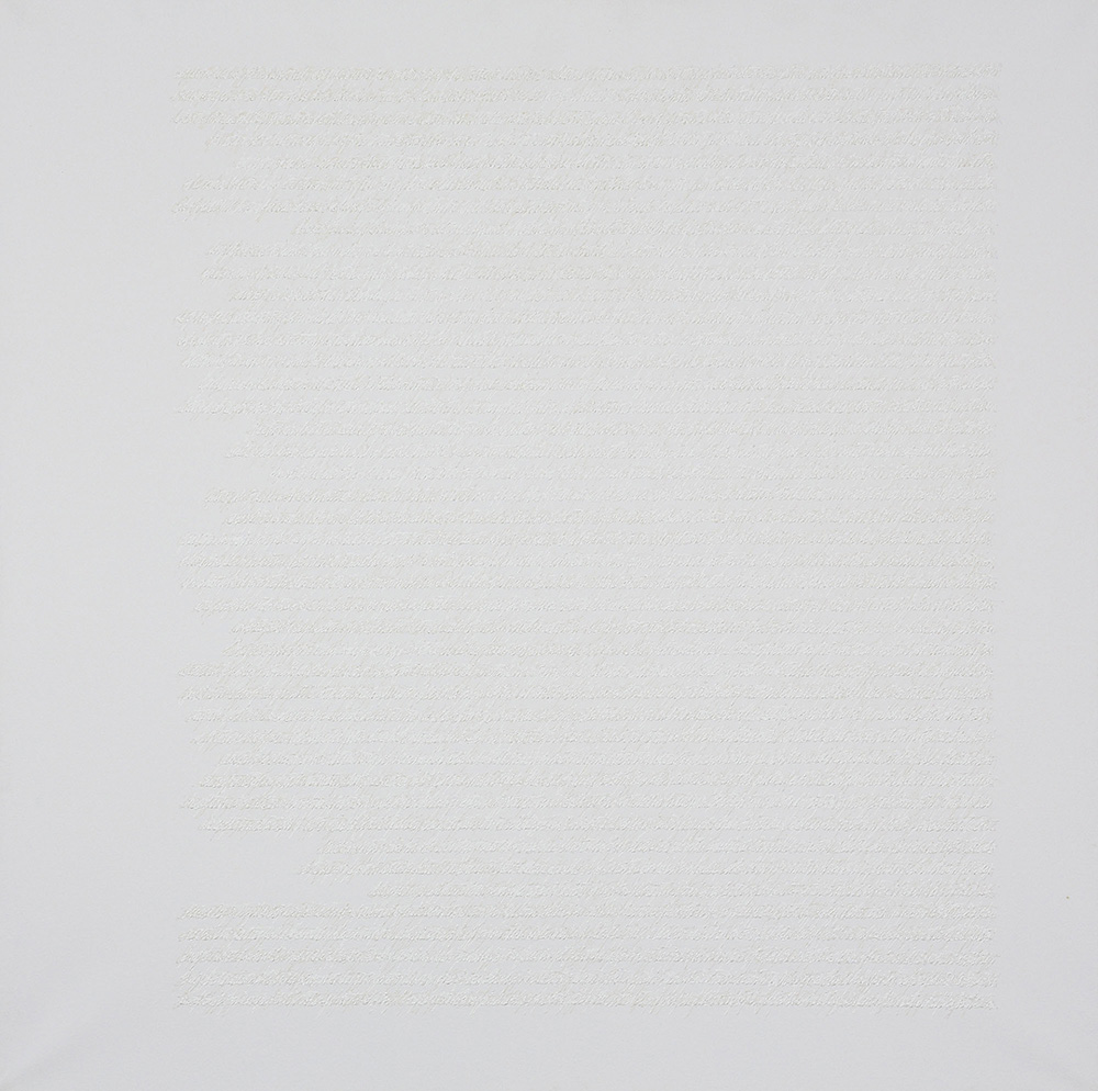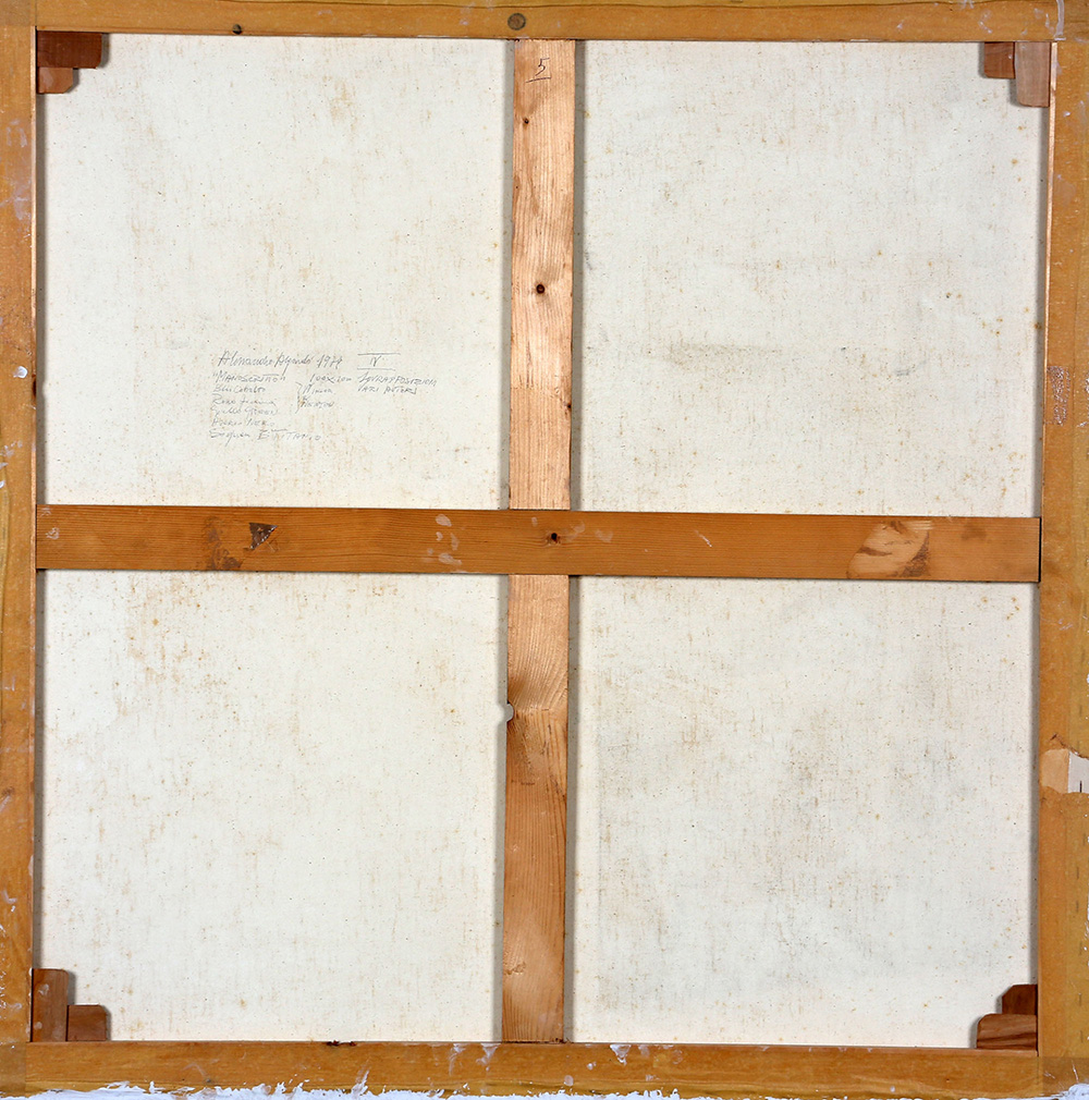 ALESSANDRO ALGARDI 1945 Manoscritto, 1979 Tecnica mista su tela, cm. 100 x 100 Firmato e datato sul retro Autentica dell'artista su fotografia Prov. Collezione Privata