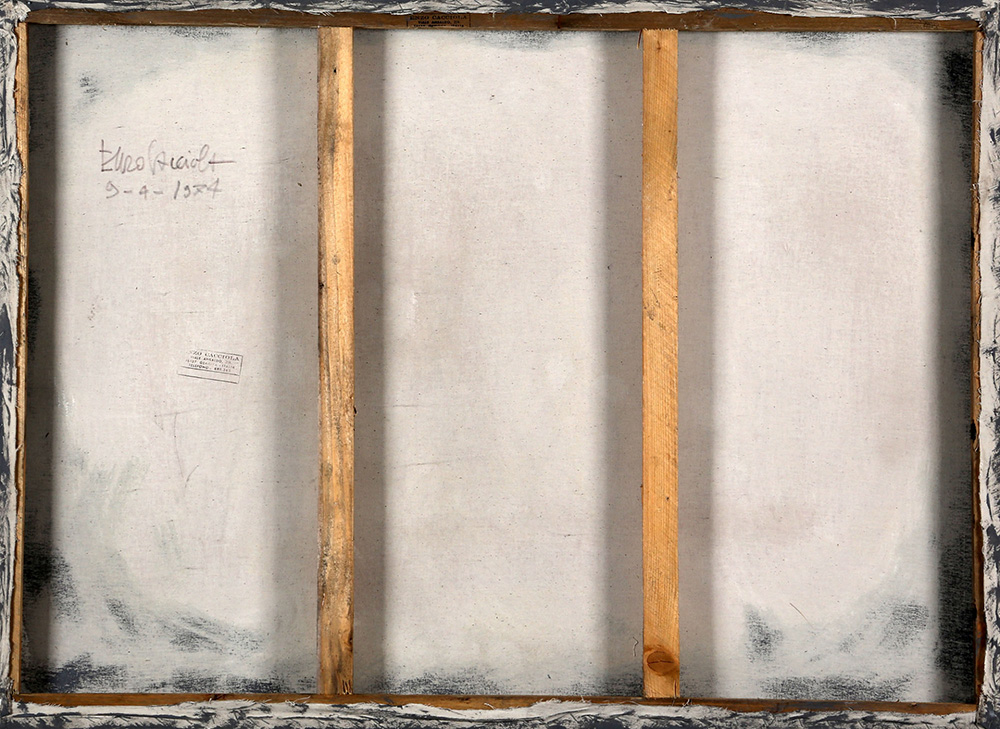 ENZO CACCIOLA 1945 9 - 4 - 1974, 1974 Cemento e asbesto su tela, cm. 80 x 110 Firmato e datato sul retro Timbro dell’artista sul retro Autentica dell’artista su fotografia Prov. Collezione Privata