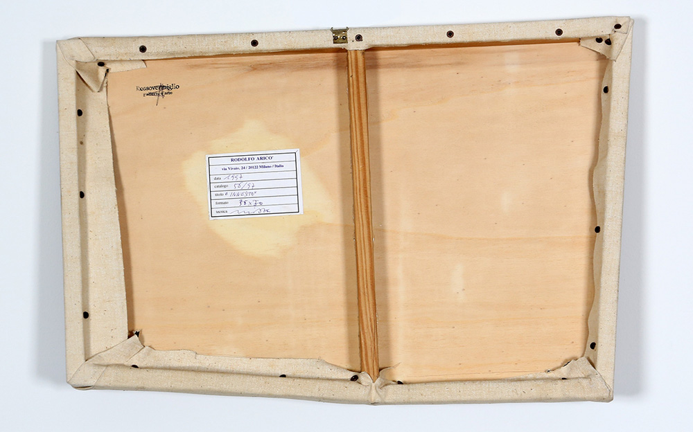RODOLFO ARICO' 1930 - 2002 Innesto, 1997 Acrilico e collage su tela, cm. 32 x 49 x 3 Firmato e datato in basso a destra Timbro Rossovermiglio Galleria d'Arte sul retro Etichetta dell'artista sul retro PUBBLICAZIONI: "Rodolfo Aricò. Viaggio 5", a cura di Vittoria Coen, Rossovermiglio e Paola Bicego Gallery, 2005 Prov. Collezione Privata