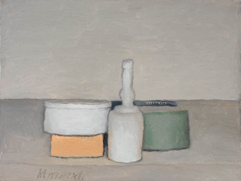 Giorgio Morandi Bologna 1890 - 1964 Natura morta, 1955 Olio su tela, cm. 30,5x40 Firma in basso a sinistra: Morandi; firma e data al verso sul telaio: Morandi 1955: etichetta Musée d'Art Moderne de la Ville de Paris / 4 octobre 2001 - 6 janvier 2002: etichetta Galleria del Milione / Milano / La fotografia di questo dipinto / è stata archiviata dall'autore / in Bologna con il n. 473 / in data 16 giugno 1961: etichetta Tate Modern, Bankside, London SE 1 9TG / Giorgio Morandi 22 May - 12 August 2001 / Catno 26 Exhibno 404. Esposizioni: Giorgio Morandi, Londra, Tate Modern, 22 maggio - 12 agosto 2001, cat. pp. 9, 123, n. 26, illustrato a colori; Morandi dans l'écart du réel, Parigi, Musée d'Art Moderne de la Ville de Paris, 5 ottobre 2001 - 6 gennaio 2002, cat. pp. 78, 154, n. 32, illustrato a colori. Attestato di libera circolazione. Free export license. Bibliografia: Lamberto Vitali, Morandi. Catalogo generale, volume secondo, 1948-1964, Electa Editrice, Milano, 1977, n. 945; Lamberto Vitali, Morandi. Catalogo generale, volume secondo, 1948-1964, seconda edizione, Electa Editrice, Milano, 1983, n. 945.