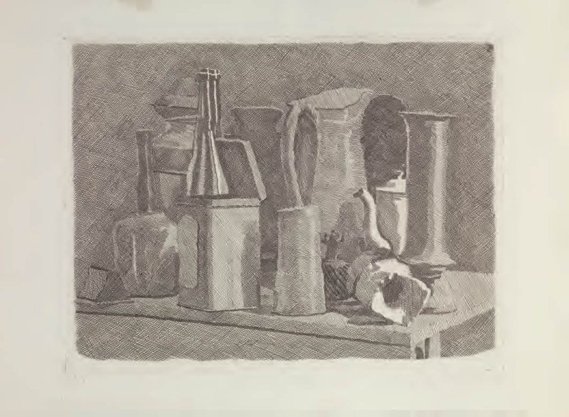 Giorgio Morandi Bologna 1890 - 1964 Grande natura morta con la caffettiera, 1933 Acquaforte su rame, es. 9/40, cm. 29,6x39 (lastra), cm. 38x51,5 (carta) Firma e data a matita sul margine in basso a destra: Morandi 1933, tiratura in basso a sinistra: 9/40. Al verso, su una carta di supporto: etichetta Calcografia Nazionale, con n. 122. Secondo stato su tre; tiratura di 40 esemplari numerati. Bibliografia: Lamberto Vitali, L'opera grafica di Giorgio Morandi, Giulio Einaudi Editore, Torino, 1964, n. 99; Michele Cordaro, Morandi incisioni. Catalogo Generale, Edizioni Electa, Milano, 1991, p. 113, n. 1933 1.