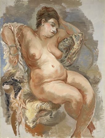 George Grosz Berlino 1893 - 1959 Nudo seduto, 1939 Olio su tela, cm. 81x61 Firma a stampa in basso a destra: Grosz; al verso sulla tela: firma a stampa Grosz: timbro George Grosz Nachlass, con n. 1-A8-3; sul telaio: etichetta e timbro Arte Cento, Milano, con n. 9821. Storia: Studio dell'artista; George Grosz Estate; Arte Centro, Milano; Collezione privata Certificato di Ralph Jentsch, Roma / New York, 15 novembre 2005. L'opera sarà inclusa nel catalogo ragionato dei dipinti di George Grosz, a cura di Ralph Jentsch, di prossima pubblicazione.