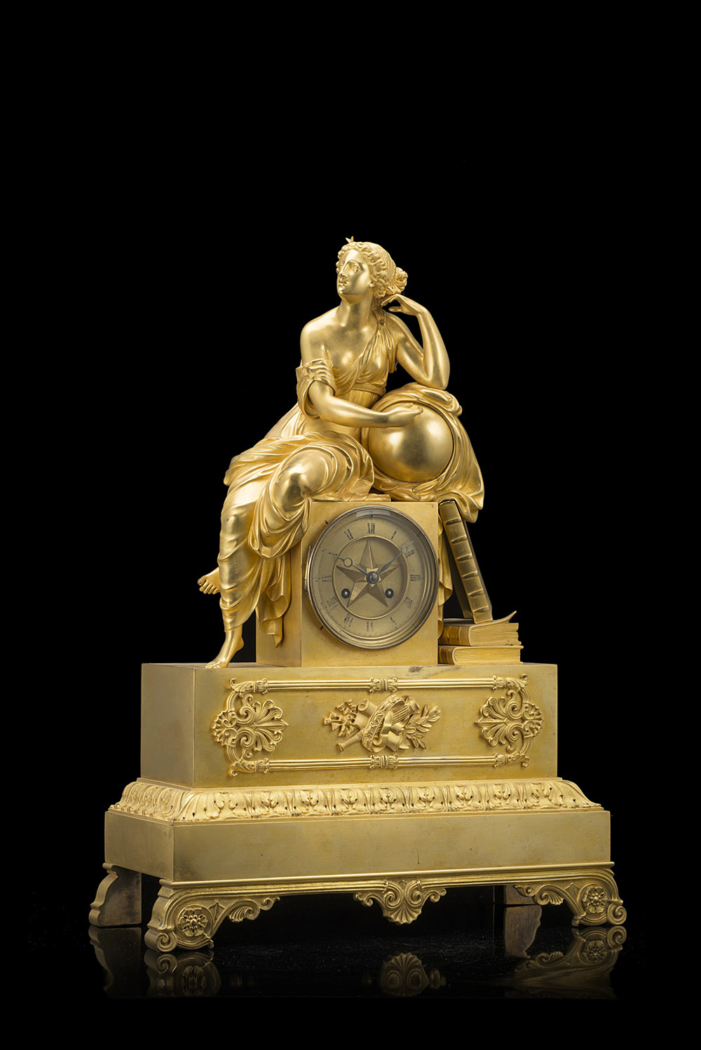 Pendola in bronzo dorato decorata a figura femminile allegorica