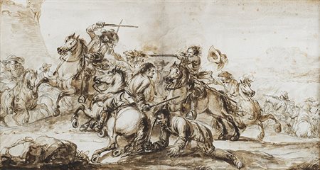 Francesco Simonini (Parma 1686 - Parma 1766)"Zuffa di cavalieri" disegno su...