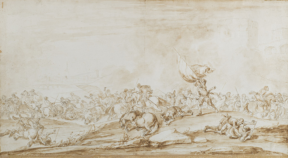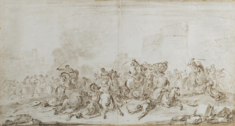 Francesco Simonini (Parma 1686 - Parma 1766)"Zuffa di cavalieri sullo sfondo...