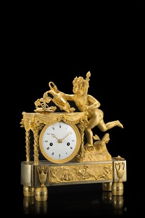 Ormolu mantel clock modelled with allegory of "Baccus"
