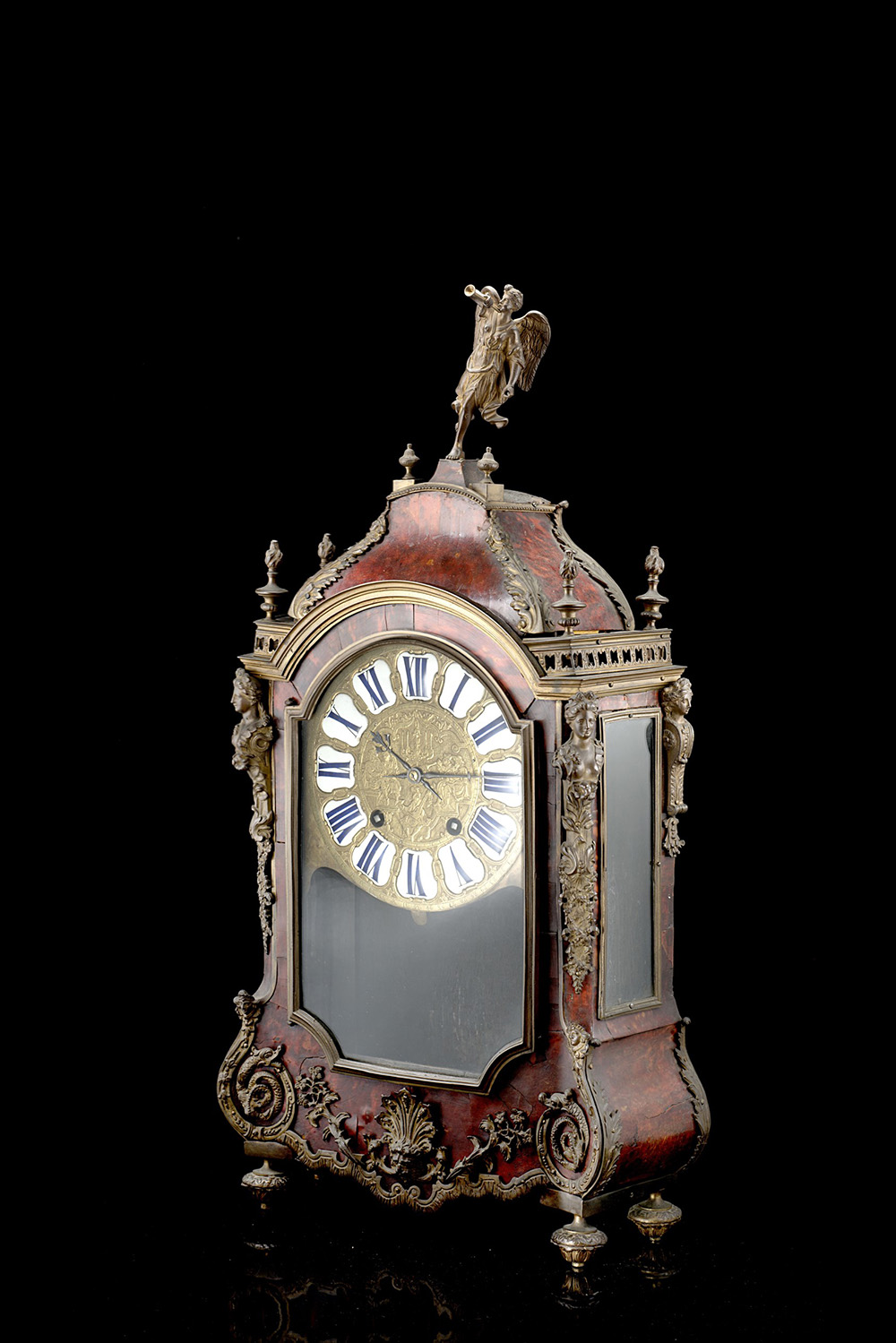 ortoiseshell veneered mantel clock modelled with the figure of an angel