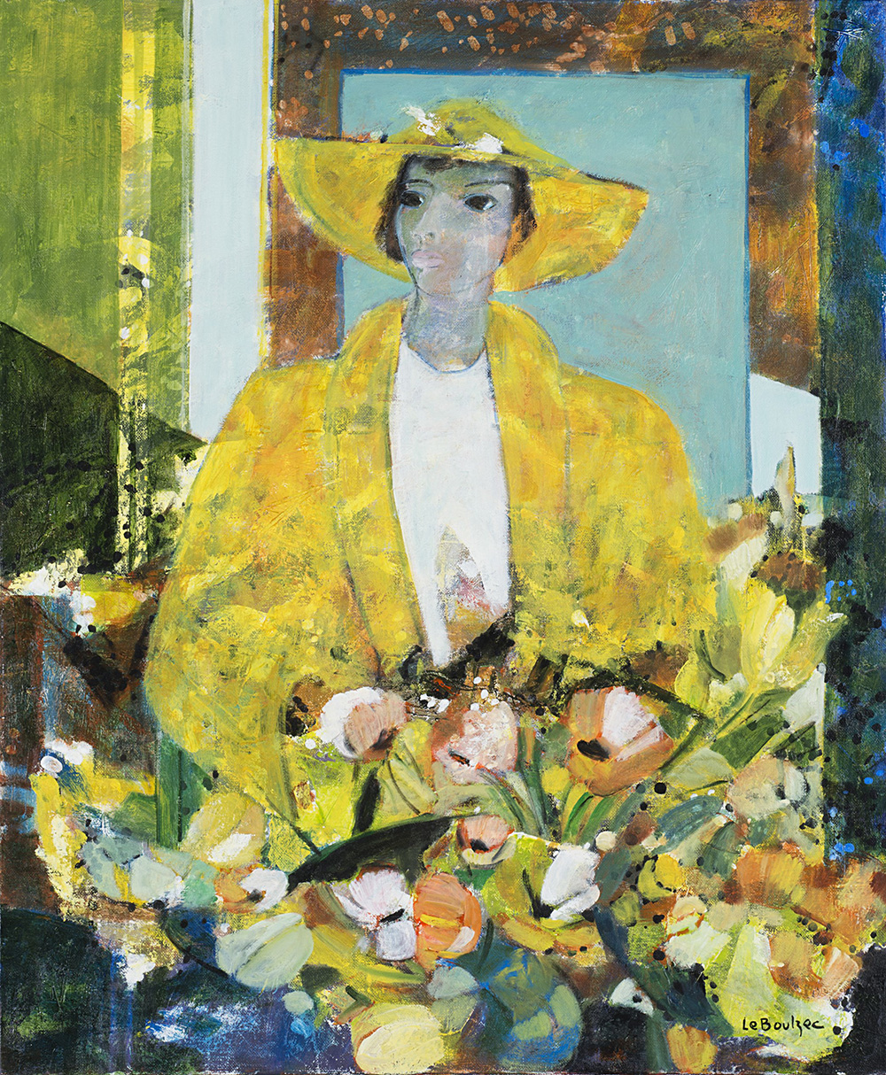 Le Boulzac "Dama con fiori" olio su tela (cm 65x54). Firmato in basso a...