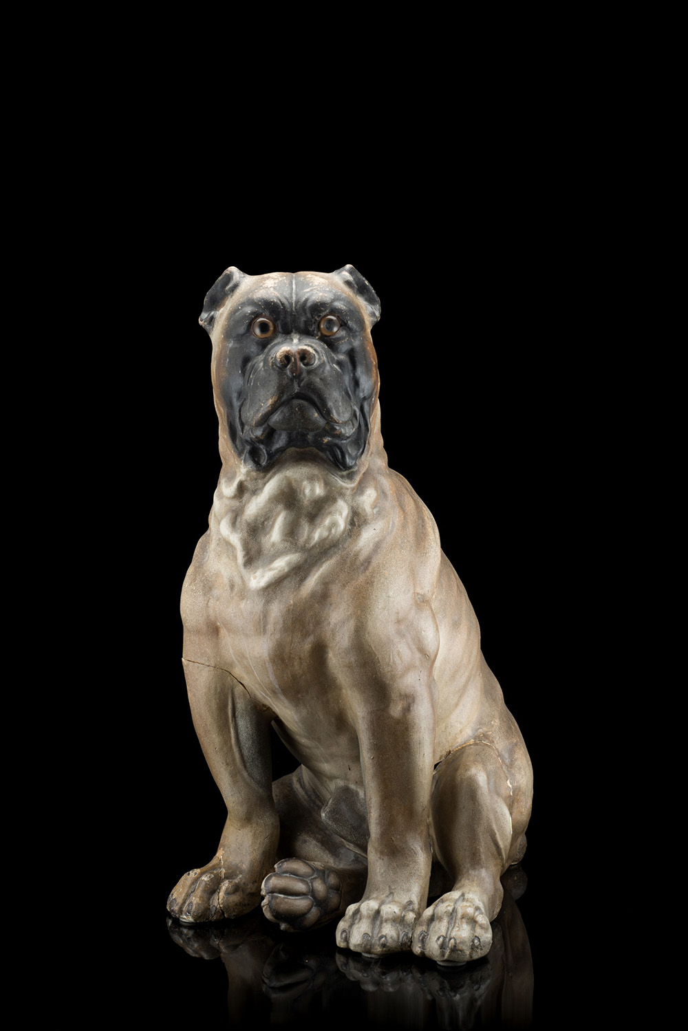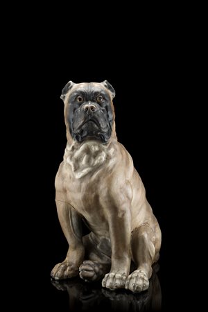 Scultura in terracotta decorata in policromia raffigurante un Molosso con occhi in pasta vitrea (h. cm 60) (restauri)