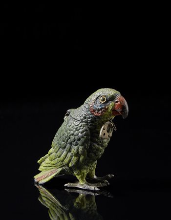 Austrian manufacture (?) early 20th century. A maneybox in the shape of a parrot (h. cm 10) (defects and restorations)