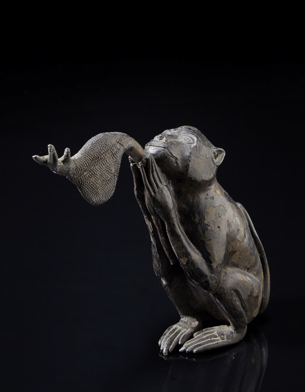 "Scimmia" scultura in bronzo dipinto (h. cm 25) Giappone, sec. XX (difetti)