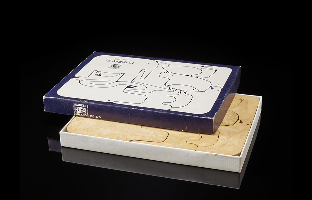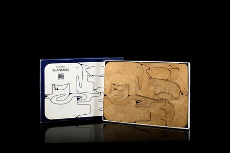 "Sedici animali", puzzle in resina espansa, produzione Danese, Milano 1972, disegno del 1957. In custodia.