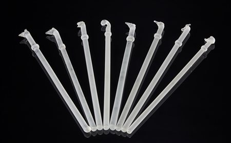 A group of eight champagne swizzle sticks with dog's heads (defects)