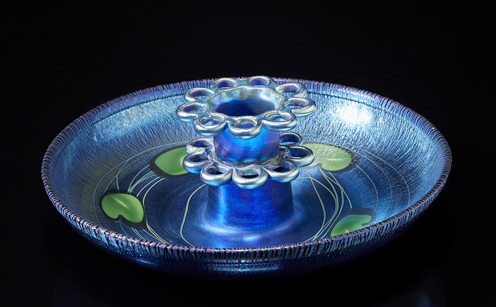 Fioriera centrotavola in vetro blu "Favrile". New York, primi anni del sec. XX (d. cm 37). Firmata e numerata 8109K.
