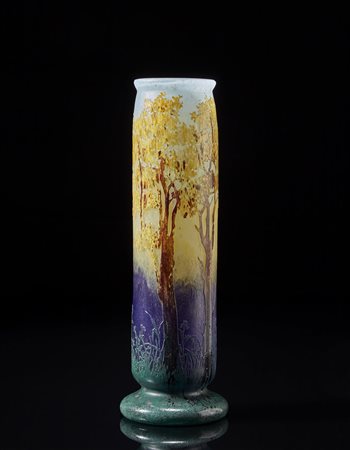 Daum, Nancy Vaso di forma cilindrica in vetro a cammeo inciso all'acido con...