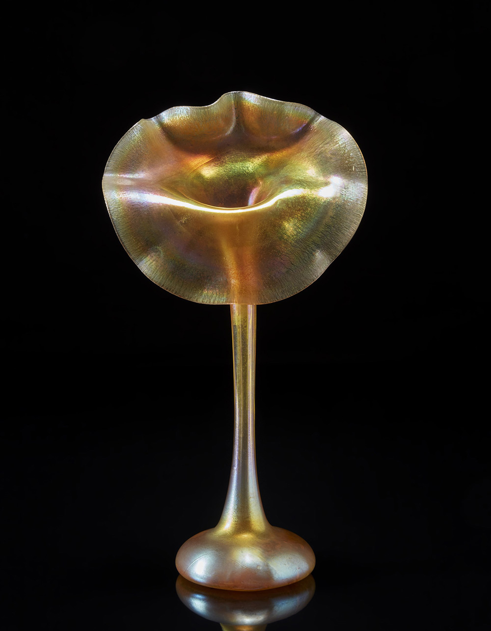 Vaso modello "Jack-in-the-pulpit" in vetro "Favrile". New York, inizi del sec. XX (h. cm 46). Firmato e numerato 621C
