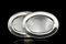 Coppia di vassoi in argento di forma ovale con superficie liscia e bordura...