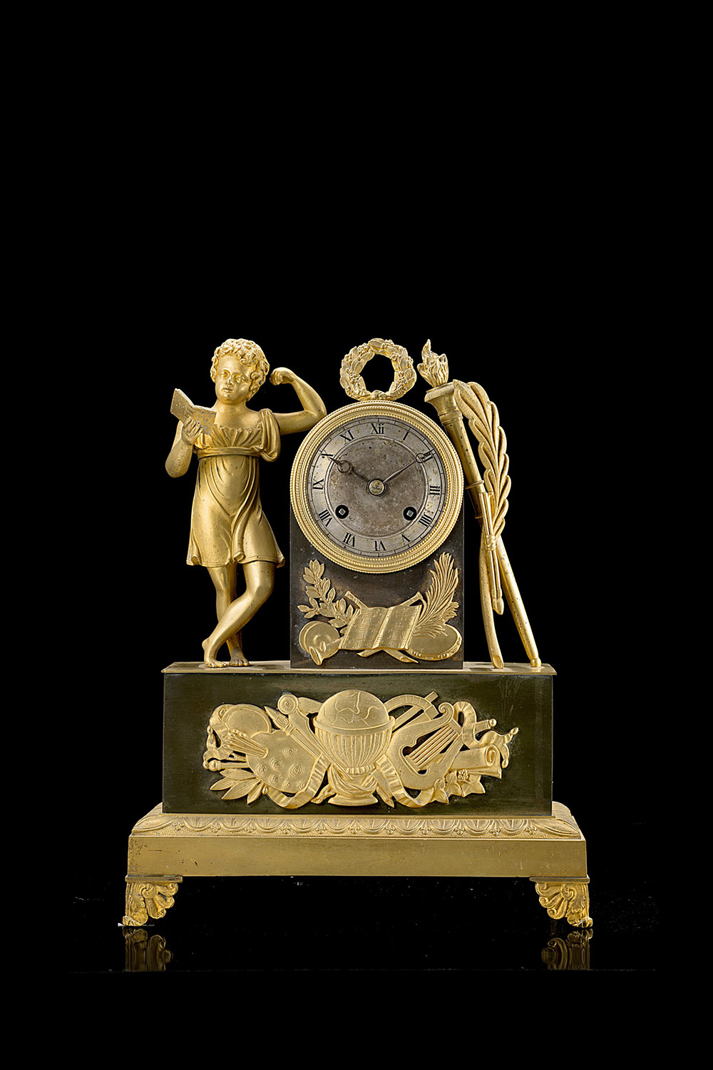 Ormolu mantel clock modelled with the allegory of "The Arts"