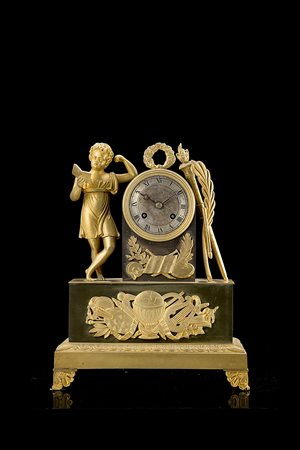 Pendola in bronzo dorato decorata con allegoria delle Arti
