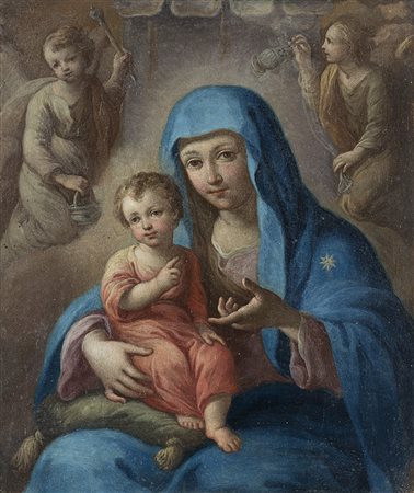 Scuola romana della fine del secolo XVII inizio XVIII "Madonna con Bambino e...