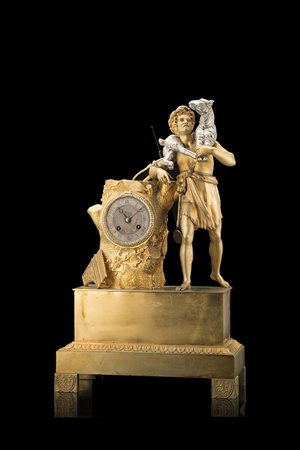 Pendola in bronzo dorato e argentato decorata con figura con agnello
