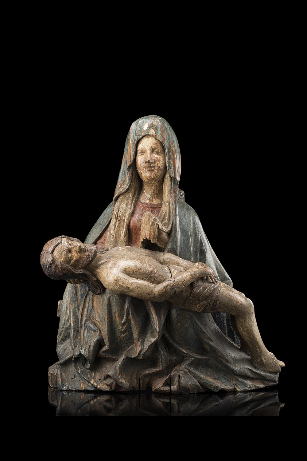 15th/16th-century Venetian sculptor "Pietà" wooden lacquered giltwood and polychrome sculpture (h. cm 57) (defects and losses)