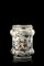 Grande albarello in maiolica in forma di rocchetto. Decorazione policroma in giallo, verde e bruno a ‘figuretti’, ‘paesini’ e volatili sparsi su tutta la superficie del vaso. Sulla parte centrale del corpo è raffigurata una scena galante che sembra una contaminazione fra modelli occidentali ed orientali: la donna reca un ombrellino di sapore orientale e la scena avviene su una stilizzata base rocciosa. Savona, sec. XIX, sotto al piede compare la marca di fabbrica: A.L. e globo crucifero (h. cm 30) (difetti)