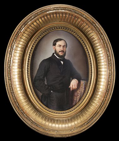 K.P.M. Berlin manufacture, late 19th-century "Portrait of a man" an oval painted porcelain plaque (cm 17x13,5) Framed
