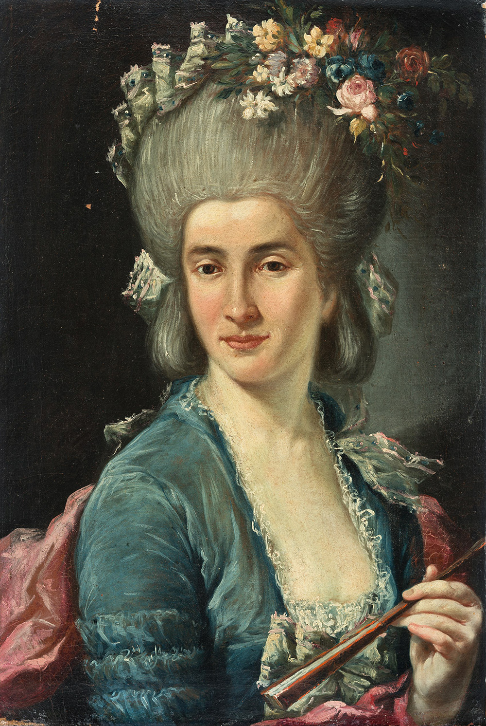 18th century neapolitan master " Lady's potrait" oil on canvas (cm 56,5x40) giltwood frame (defects and restauration)