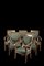 Sei poltrone in noce con braccioli terminanti a ricciolo decorati con rosone...