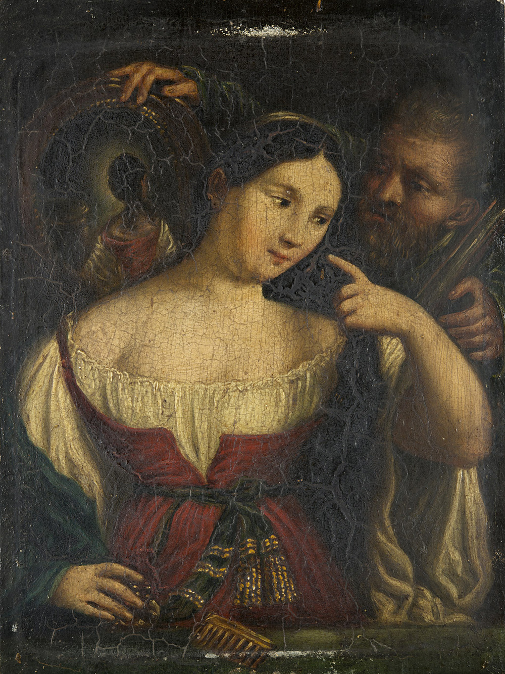 Follower of Titian, 17th Century, "Vanitas" oil on canvas (cm 27x20) framed