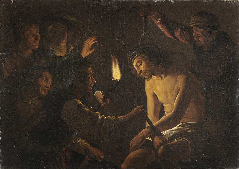 Follower of Gerrit van Honthorst "The Crowning with Thorns" oil on canvas (cm 44x61,5) framed (defects)