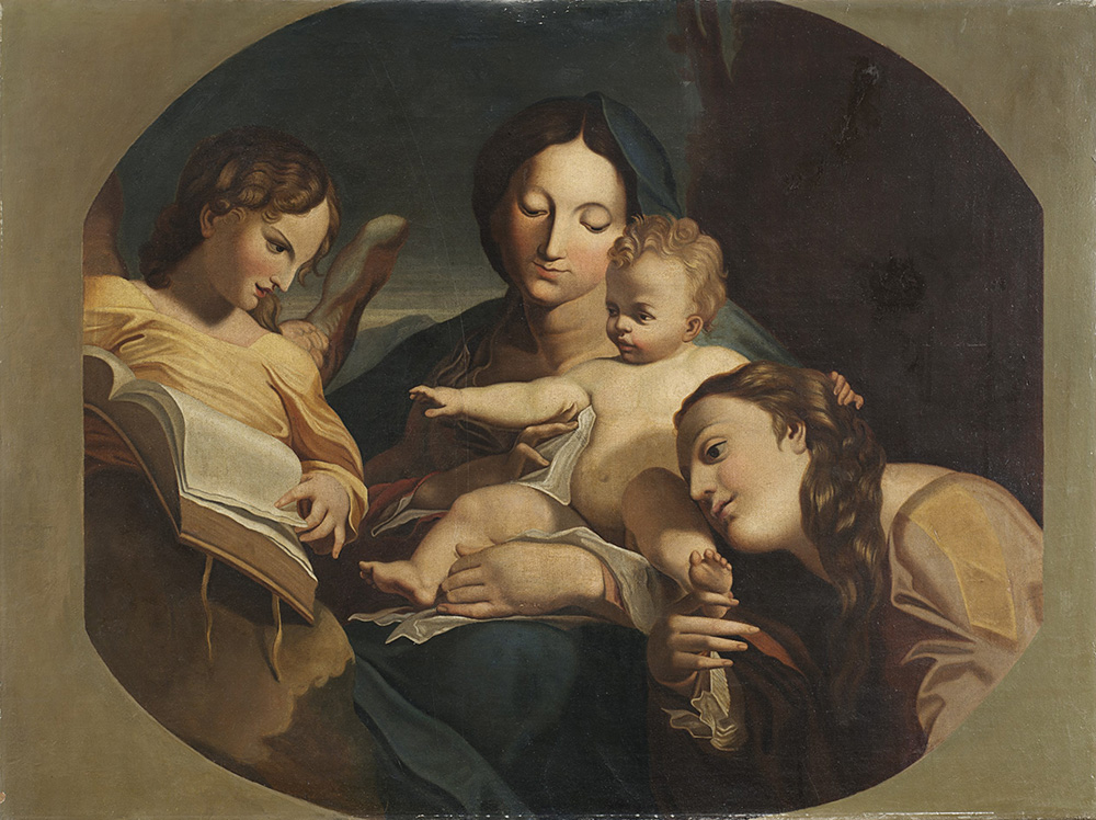 Unknown, from Correggio, " Virgin, Child and Saint Mary Magdalene" oil on canvas (cm 117x87,5) framed (defects)