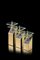 Trittico porta candele in metallo dorato a forma di parallelepipedo, con...