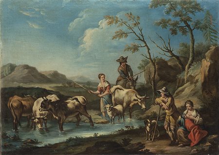Maestro della fine del secolo XVIII"Pastori e armenti" olio su tela (cm...