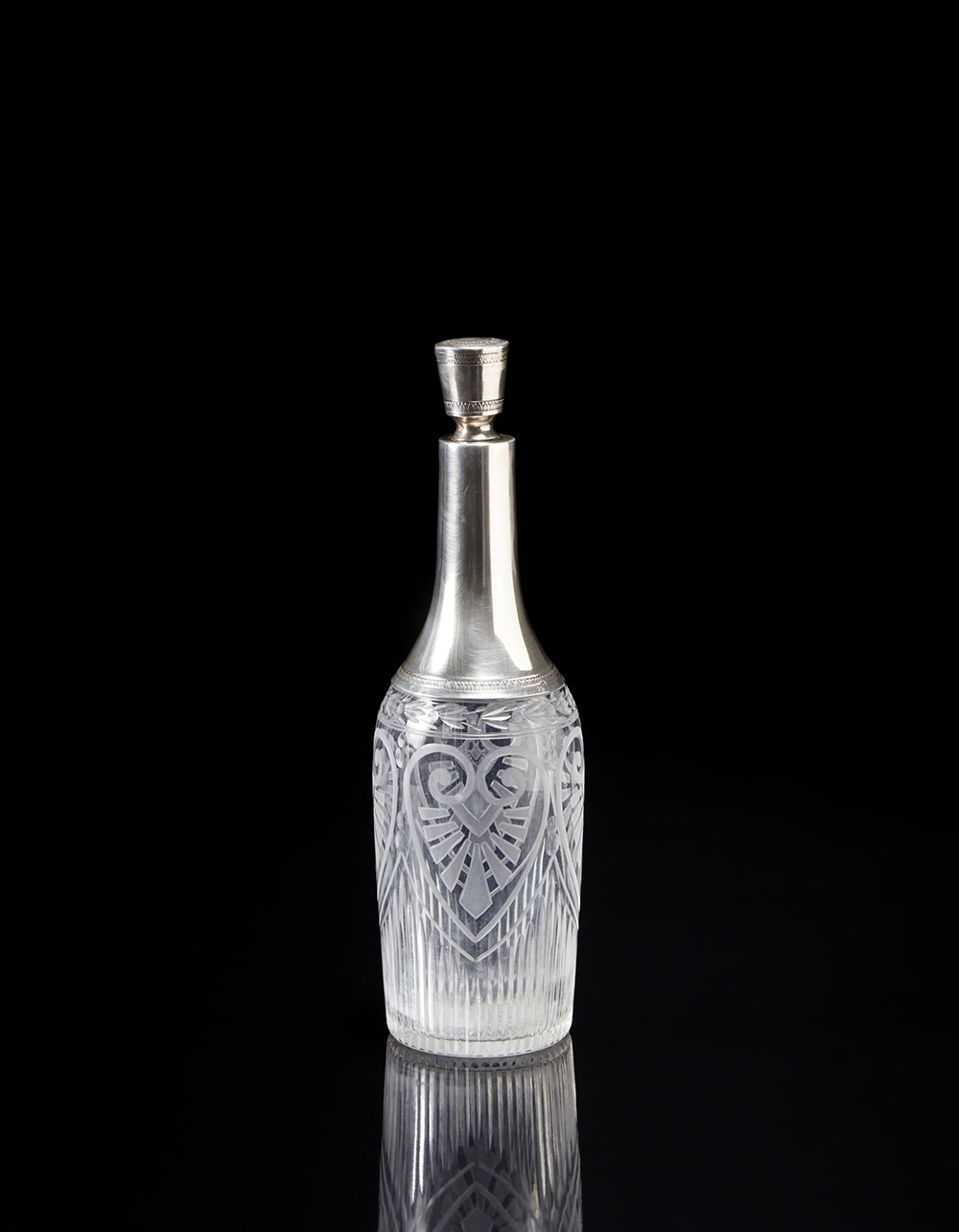 Bevelled glass bottle with silver top and ferrule. France, first half of the 19th century