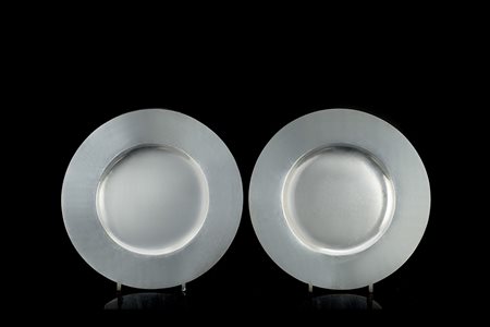 Coppia di sottopiatti in argento a corpo liscio. Italia, inizio sec. XX (d. cm 30) (gr 1200 ca.)