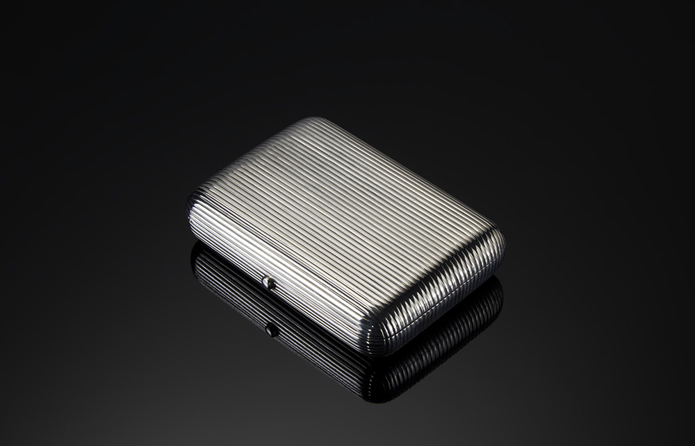 Tabacchiera in argento con corpo scanalato. Mosca, seconda metà sec. XIX, argentiere Dmitriì Nikolaevich Nikolaev o D. P. Nikitin (?) (gr 170 ca.)