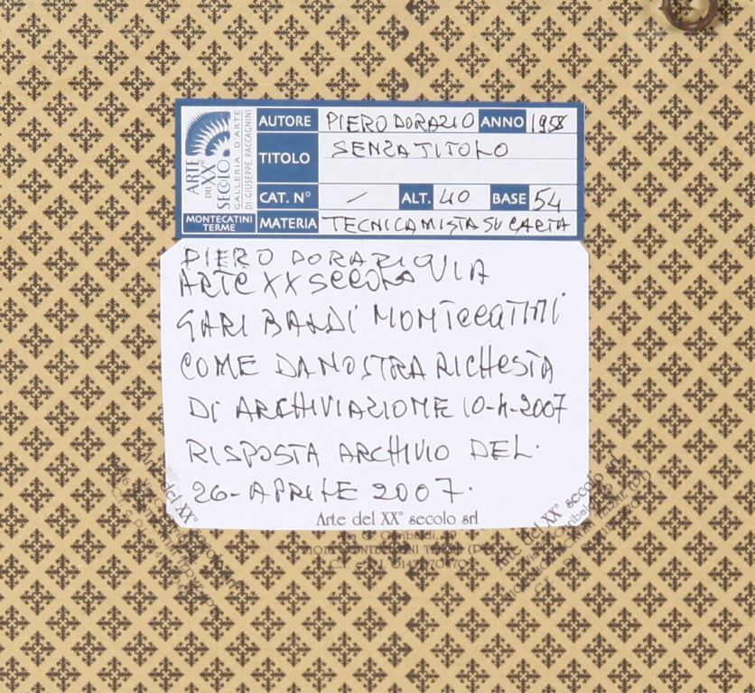 on the reverse:label and stamp of Arte del XX secolo Arte Moderna e Contemporanea, Montecatini Terme (PT)