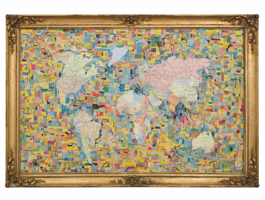 collage di "Topolino" e carte geografiche cm 128x189