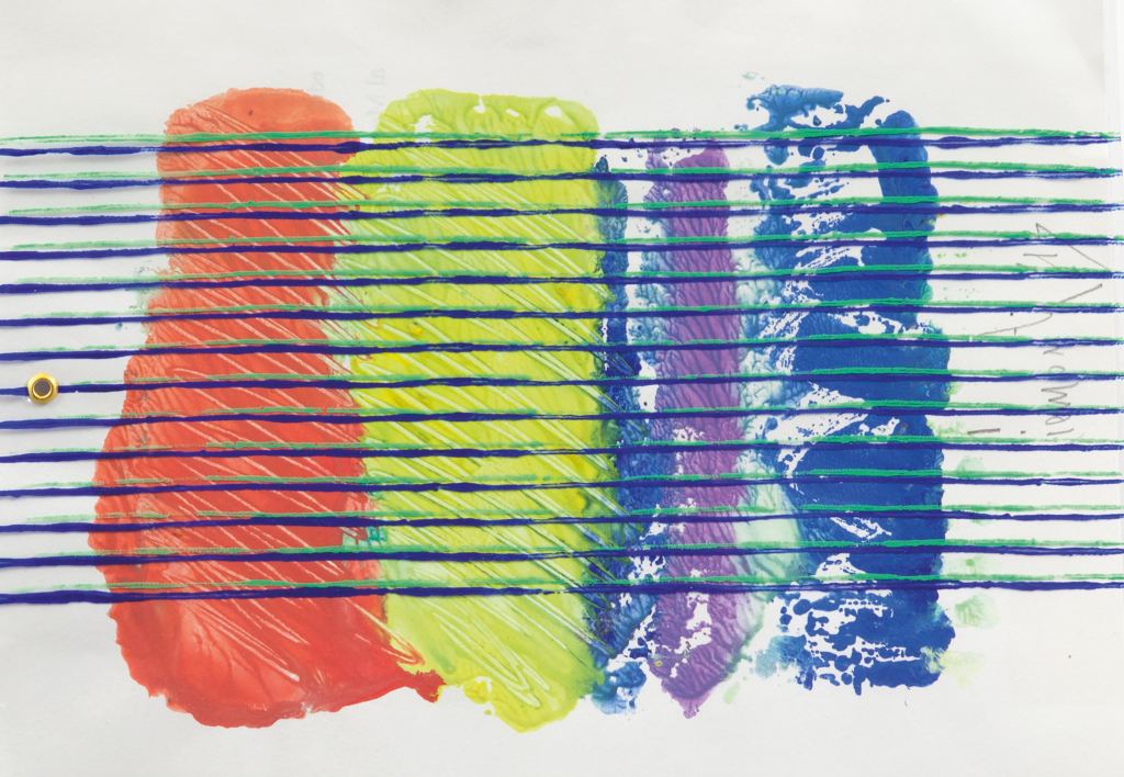 acrilico su cartoncino e 2 libri: "E'l'ora del colore" e "Avido d'Arte" in teca di plexiglas