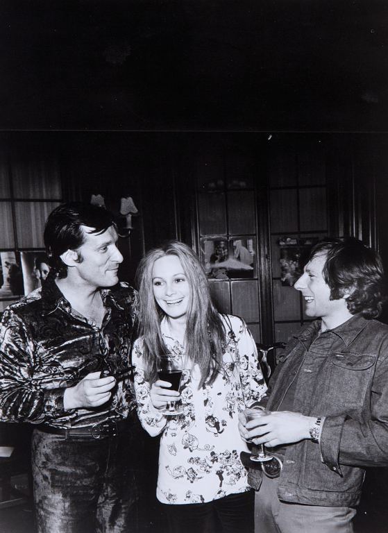 Roman Polansky con Francesca Annis e Hugh Hefner durante la pausa del film