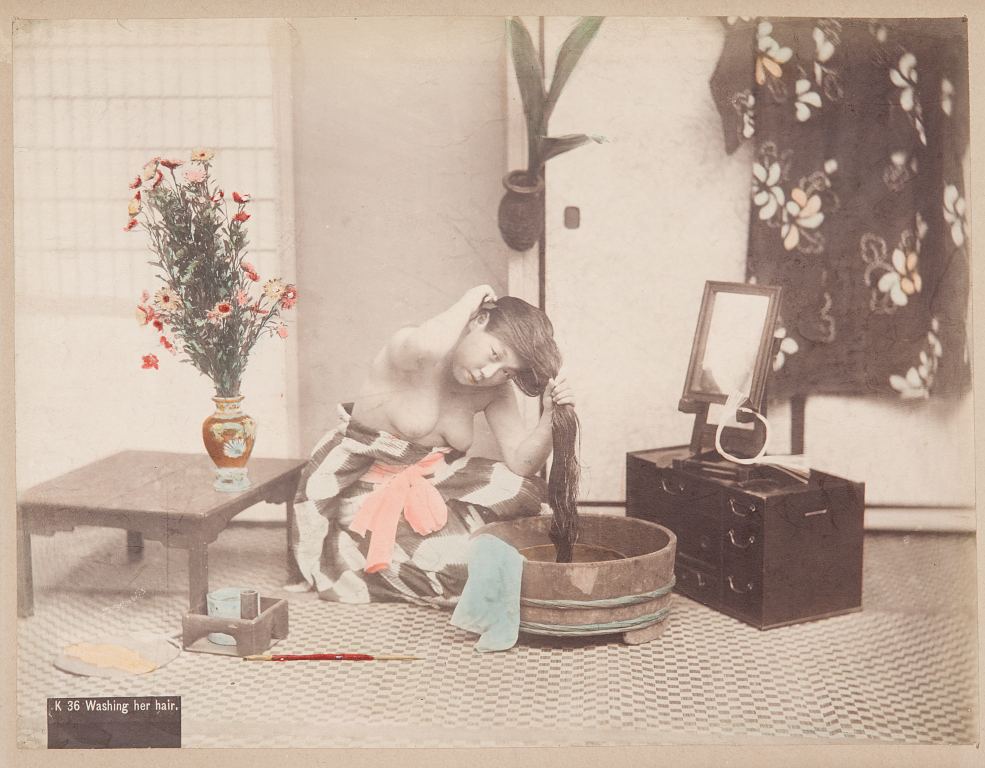 Figura femminile che si lava i capelli