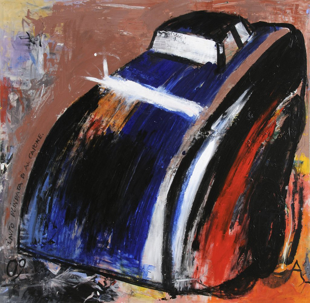 Adelchi Galloni Varese Ligure 1936 Al Capone's car 2009 acrilico su legno 100x100