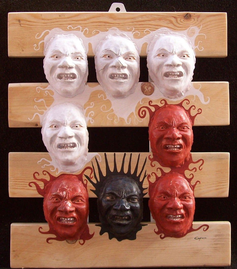 nunzio capece picerno 1954 Invasione 2016 terracotta ed acrilico su supporto in legno e metallo 45x39