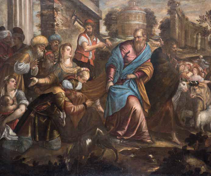 Scuola Veneta del XVII secolo SCENA BIBLICA olio su tela, cm 156x185
