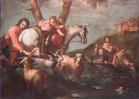 Lotto 35 | Scuola Veneta del XVIII secolo VIAGGIO DI GIACOBBE olio su tela, cm 90x125