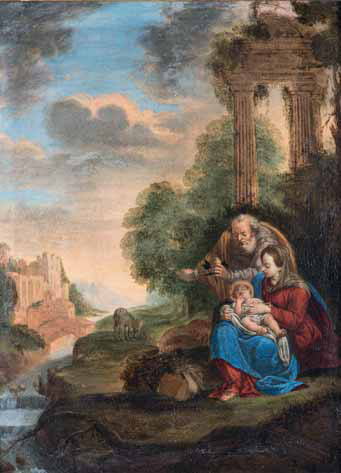 Scuola Romana del XVII secolo A) VISITAZIONE (DA UN MODELLO DI DENIJS CALVAERT) B) RIPOSO DURANTE LA FUGA IN EGITTO (DA UN MODELLO DI CAMILLO PROCACCINI) olio su tela, cm 65x48