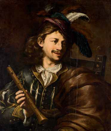 Scuola Fiamminga del XVII secolo GIOVANE PIFFERAIO olio su tela, cm 84,5x71